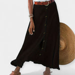 Ligera y elegante, esta falda irradia una feminidad discreta y ofrece versatilidad para cualquier ocasión. Con tejido levemente semitransparente y botones en la parte delantera, puede ser usada de día a noche con el estilo adecuado.